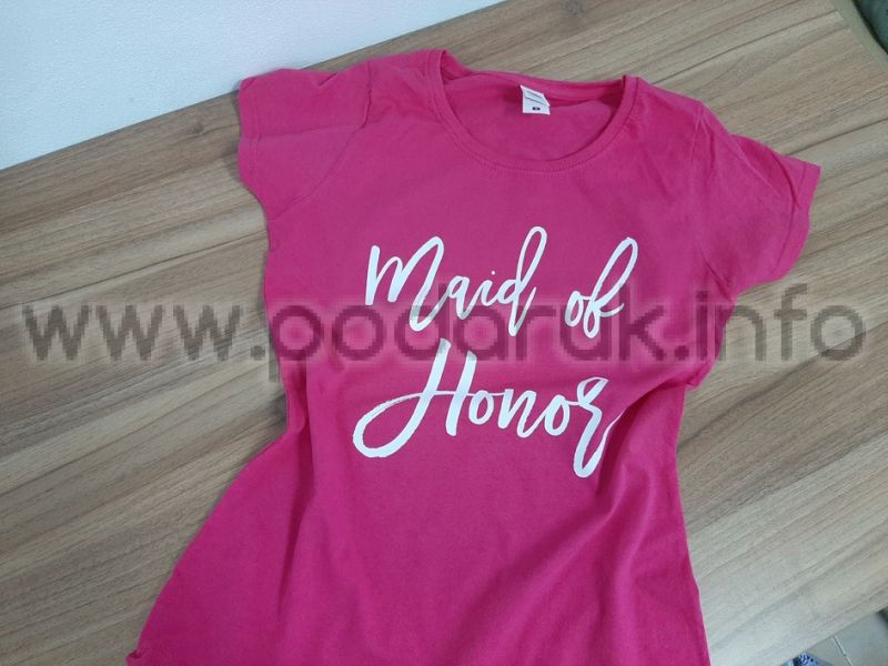 Тениската с надпис Maid of Honor за моминско парти предлага стил и комфорт.