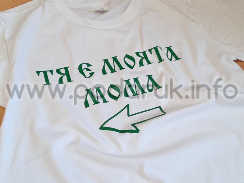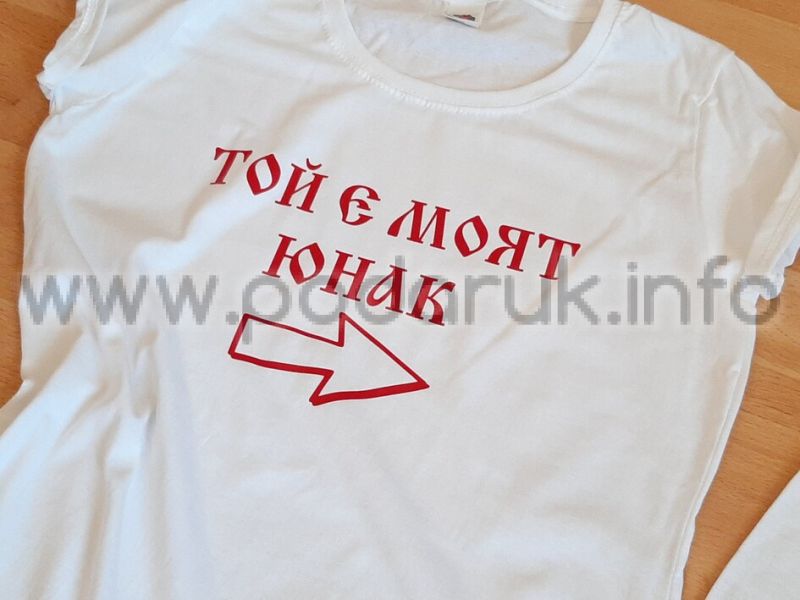 Тениските с надписи 'Той е моят юнак' и 'Тя е моята мома' и елемент стрелка за двойки предлагат стил и комфорт.
