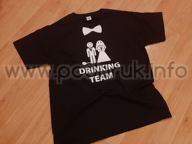 Тениска за ергенско парти със забавни елементи и надпис DRINKING TEAM