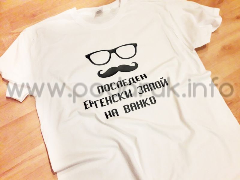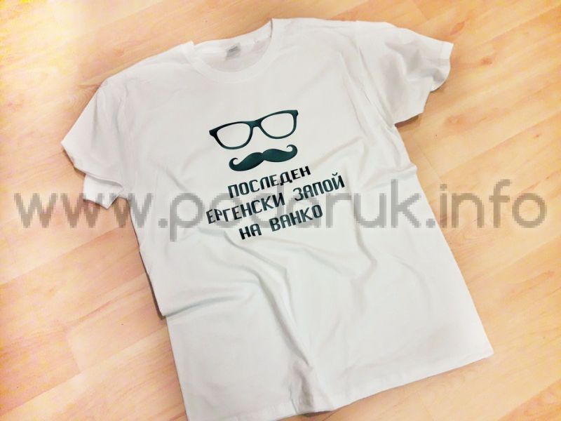 Тениска последен ергенски запой с елементи очила и мустаци е идеалният избор за ергенско парти със забавно послание, което ще подчертае важността на момента и ще зареди атмосферата със смях и позитивно настроение. Изработена от висококачествени материали, гарантиращи удобство и стил през цялото парти.