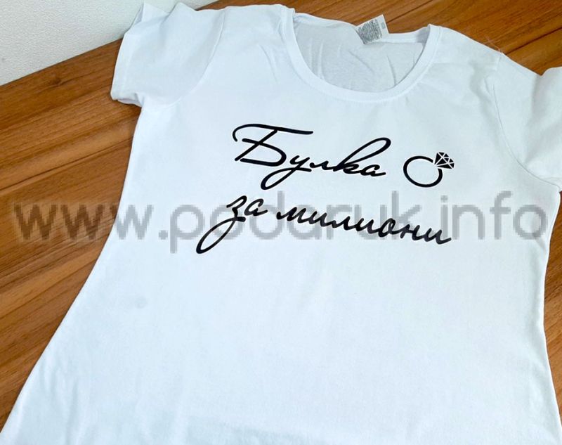 Тениската с надпис Булка за милиони за моминско парти предлага стил и комфорт.