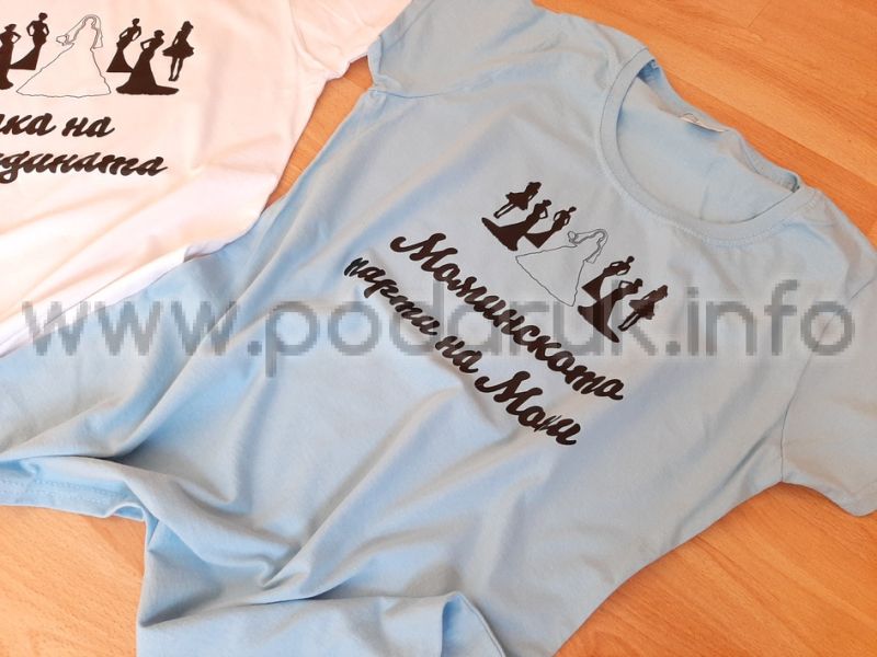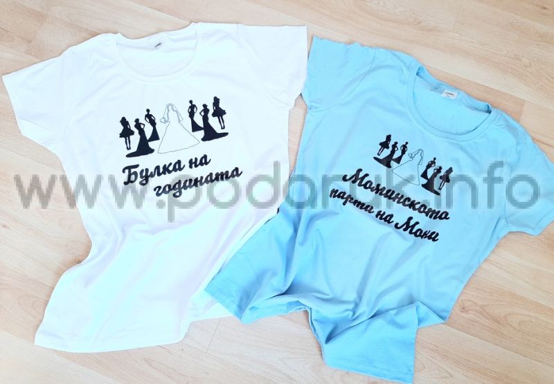 Тениските за моминско парти с надписи "Отборът на (булката)" и "Моминското парти на (булката)" предлагат стил и комфорт.
