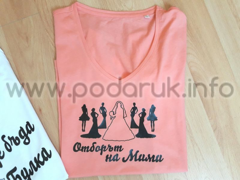 Тениските "Отборът на (булката)" и "Моминското парти на (булката)" са нежни и модерни аксесоари, предназначени да забавляват и развеселяват всички участници в този специален ден. Съчетавайки хумор и елегантност, тези тениски предлагат игриви изрази, които ще накарат всички да се усмихнат. Изработени от висококачествени материали, тези тениски гарантират удобство през целия ден на празненствата, давайки възможност на булката да се наслади на всеки момент от този ден.