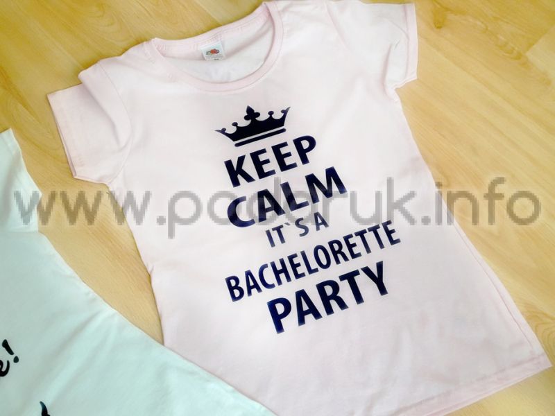 Тениските с надпис Keep Calm It's A Bachelorette Party за моминско парти предлага стил и комфорт.