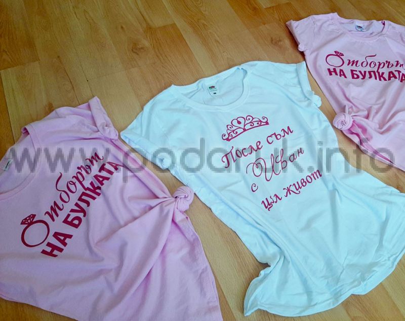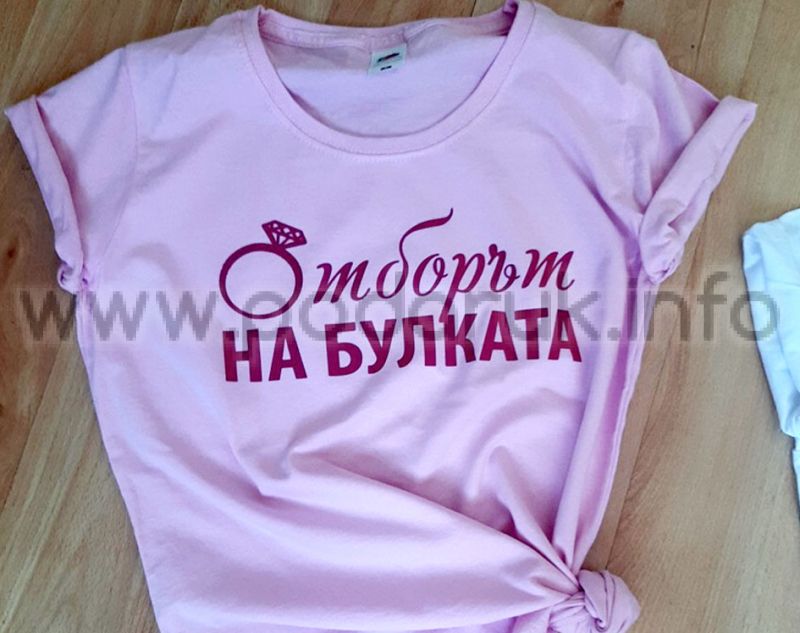 Тениска за моминско парти с надпис Отборът на булката и елемент пръстен