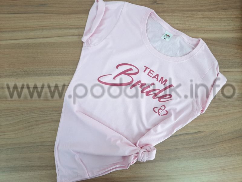 Тениската с надпис Team Bride за моминско парти предлага стил и комфорт.